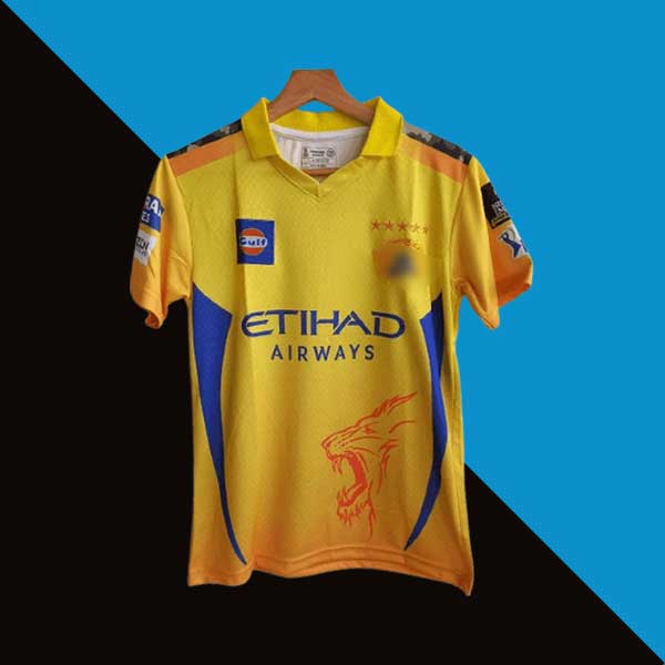 Crest: The Chennai Super Kings logo is prominently displayed on the left side of the chest, symbolizing the team’s rich history and success.