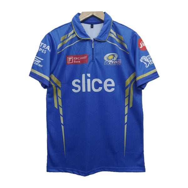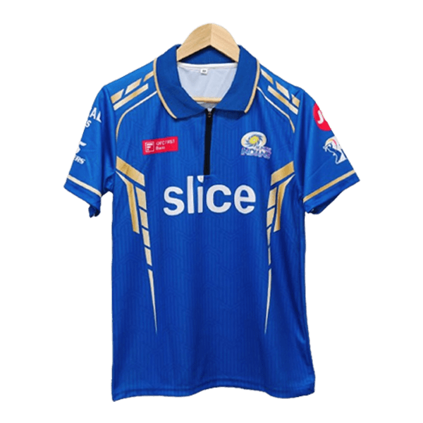 Color: The predominant color is typically blue, which is synonymous with Mumbai Indian’s traditional color scheme.