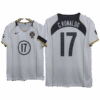 Primary Color: The jersey features a classic white color with elegant gold accents, complemented by the Nike swoosh, the Portugal crest, and Ronaldo’s number 17.