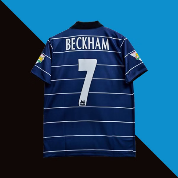 Relive the peak of late 90s football fashion with the Manchester United 1999-2000 away jersey, worn by none other than David Beckham, the Red Devils legendary number 7.