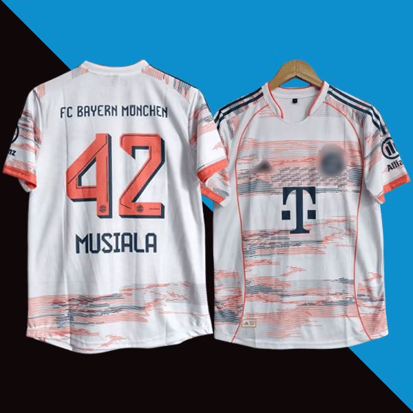 FC Bayern Munich 2025-26 Away jersey celebrates one of the club’s brightest stars, Musiala. Designed with tradition and innovation in mind, this jersey proudly represents fans who support their favorite team and player, Jamal Musiala.