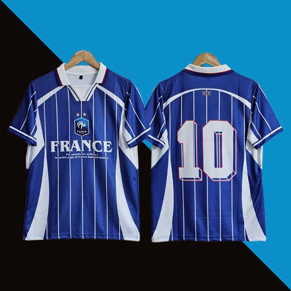 Vintage vibes. playmaker energy. Step into timeless football culture with the France Retro 10 jersey – blue striped edition.