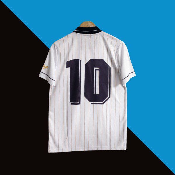 Featuring a clean white base with classic printstrips, retro collar detailing, and the legendary no.10 on the back, this jersey blends heritage football vibes with modern comfort.