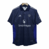 Primary Color:  The Jersey features Manchester United’s traditional away colors blue, enhanced with modern design elements. The front is adorned with subtle, darker red accents, adding depth and a contemporary look.