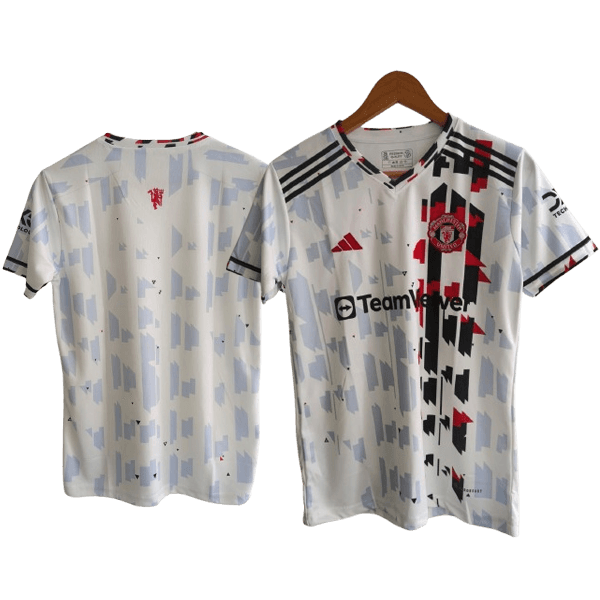 Elevate your game day experience with the Manchester United 2024-25 special edition jersey. This striking piece showcases a bold white geometric pattern that represents the club’s modern flair while paying homage to its rich history.