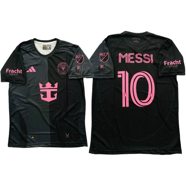 Primary Color: The jersey features the iconic black, symbolizing the purity and elegance of Inter Miami away.