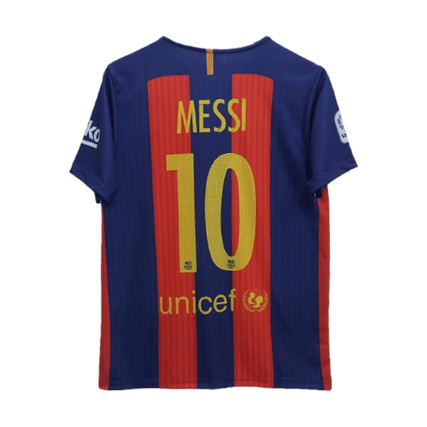 Introducing Messi Barcelona 2016-17 home jersey, a piece of football history that celebrates the incredible skills and achievements of Lionel Messi during his time with Barcelona.