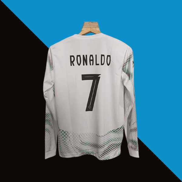 Ronaldo name and number: Cristiano Ronaldo’s name and his iconic number 7 are professionally printed on the back, honoring his skills on the field.