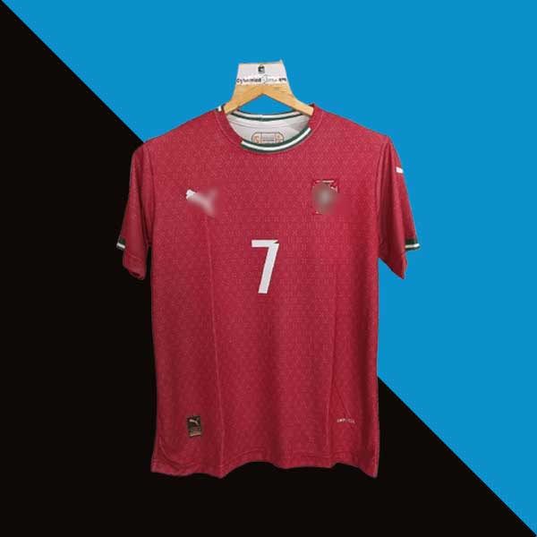 Primary Color: The jersey features the iconic red color, symbolizing the colors of the Portuguese national team and representing unity and pride.