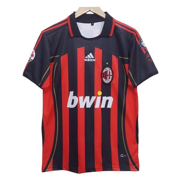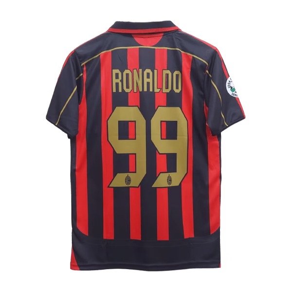 The AC Milan 2006-07 home jersey featuring Kaka and Ronaldo Nazário is a celebration of two footballing icons who graced the San Siro during a historic season.