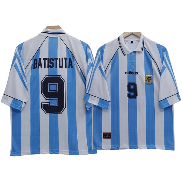 Relive the golden era of Argentine football with the Argentina Batistuta 1996 home jersey. A tribute to one of the most prolific strikers in the game’s history, this classic jersey replicates the kit worn by Gabriel Batistuta during his peak with the national team.