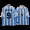 This retro jersey captures Argentine football’s bold spirit, featuring the traditional sky blue and white strips.