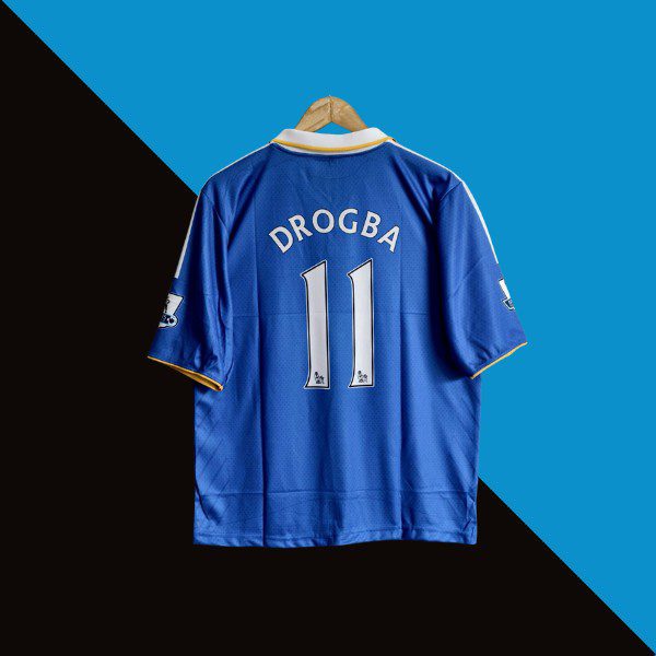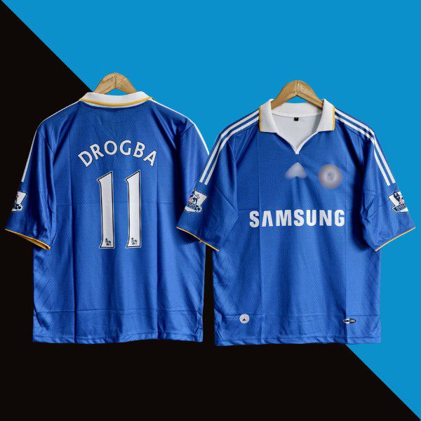 The Chelsea 2008-09 home jersey- Drogba edition is a tribute to one of the most iconic strikers in Premier League history. featuring the classic Chelsea blue, vintage collar design, samsung sponser print, and Drogba No.11 on the back.