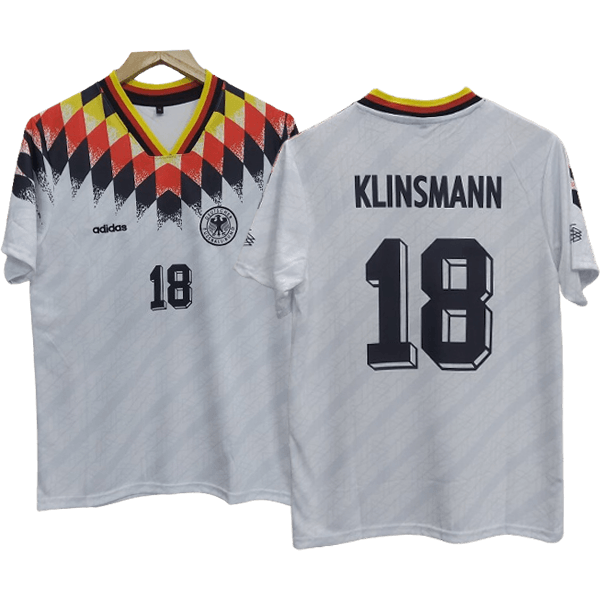 Introducing Germany’s 1994 World Cup Klinsmann home jersey, a timeless piece of football history that is one of the most iconic moments in German football and honors the legendary striker, Jürgen Klinsmann.
