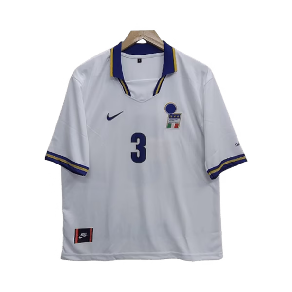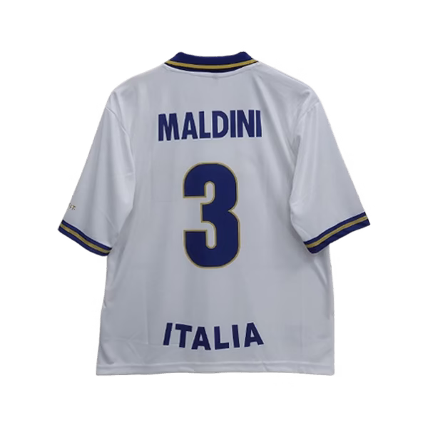 Relive the elegance of Italian football with the Italy 1996 Paolo Maldini away jersey, a timeless classic worn by one of the greatest defenders in football history.