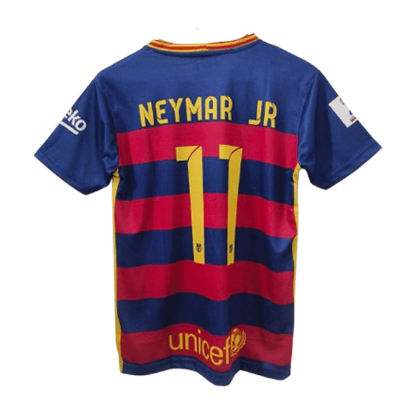 Neymar, Barcelona 2015-16 home jersey—it’s a tribute to Lionel Messi’s extraordinary talents during his unforgettable season with FC Barcelona.