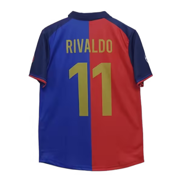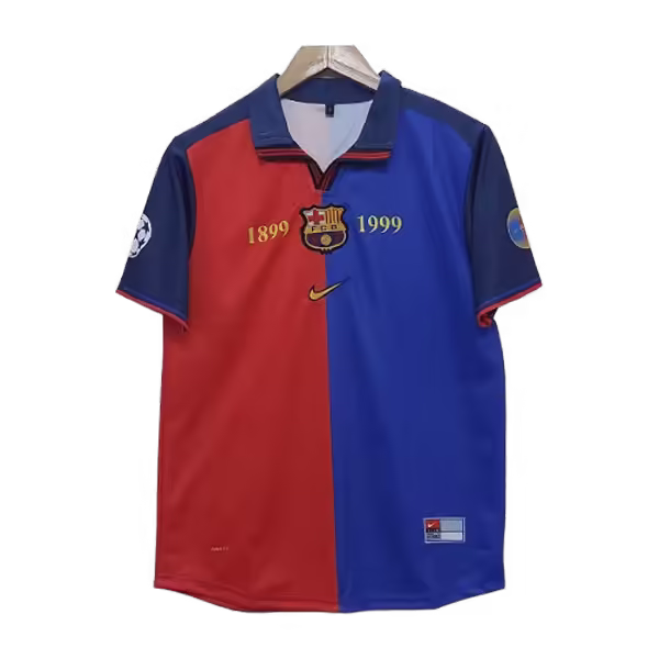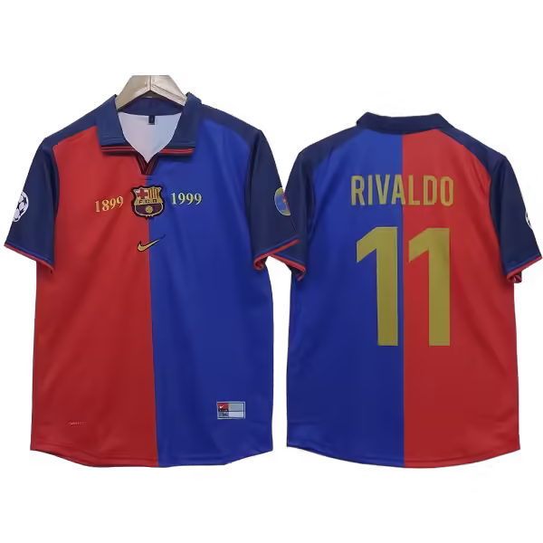 Commemorate a century of FC Barcelona history with the iconic Rivaldo Barcelona 1899-1999 centennial home jersey. This special edition jersey, is worn by Brazilian legend Rivaldo.
