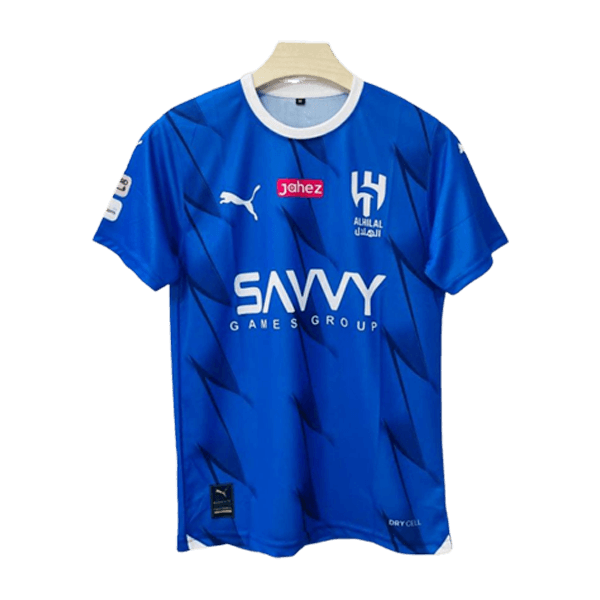 The Al Hilal club crest is prominently displayed on the left chest, symbolizing your allegiance to one of football’s most storied clubs.