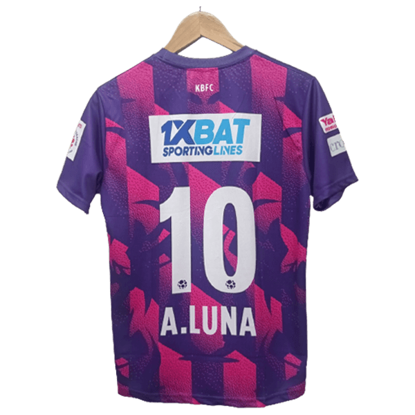 Adrian Luna, the heart and soul of Kerala Blasters’ midfield, graces the back of this jersey with the legendary number 10. As one of the most revered players in the team’s history, Luna’s name and number pay homage to his skill, leadership, and dedication to the game.