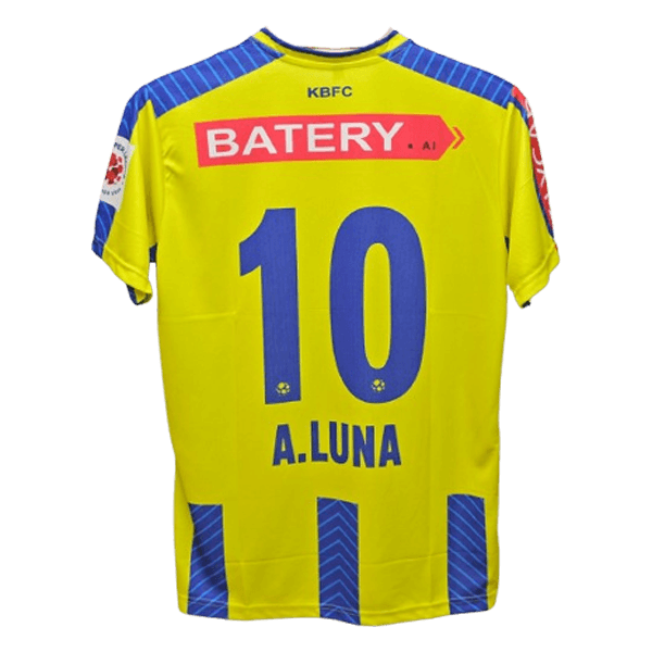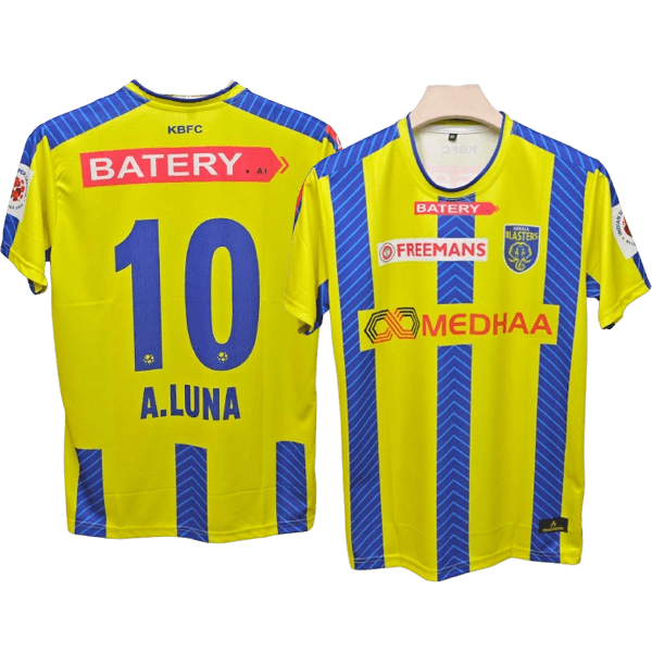 Celebrate your passion for Kerala Blasters and football with the 2024-25 home jersey featuring Adrian Luna’s number 10. Wear it with pride, whether you’re supporting the team from the stadium or showcasing your love for the sport on the streets. Get ready to be part of the excitement and energy that only Kerala Blasters can provide!